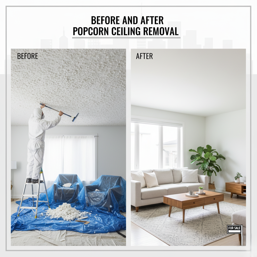 Even if you’re not doing a full remodel, popcorn ceiling removal is one of the most cost-effective ways to modernize your home before listing.